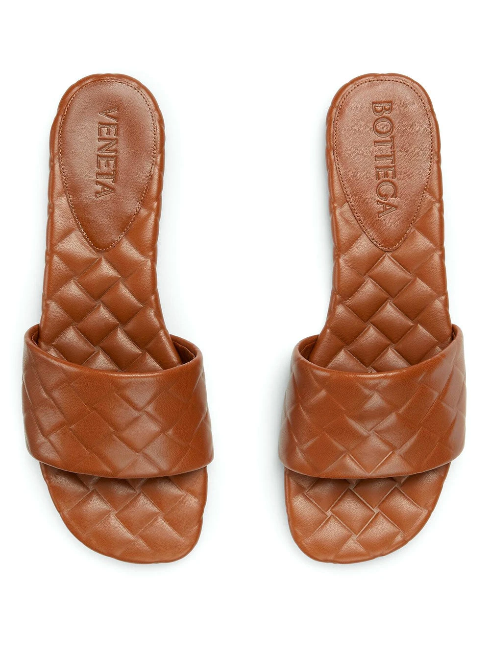 Bottega Veneta caramel brown sandals. Crafted in leather with high-frequency Intreccio pattern.