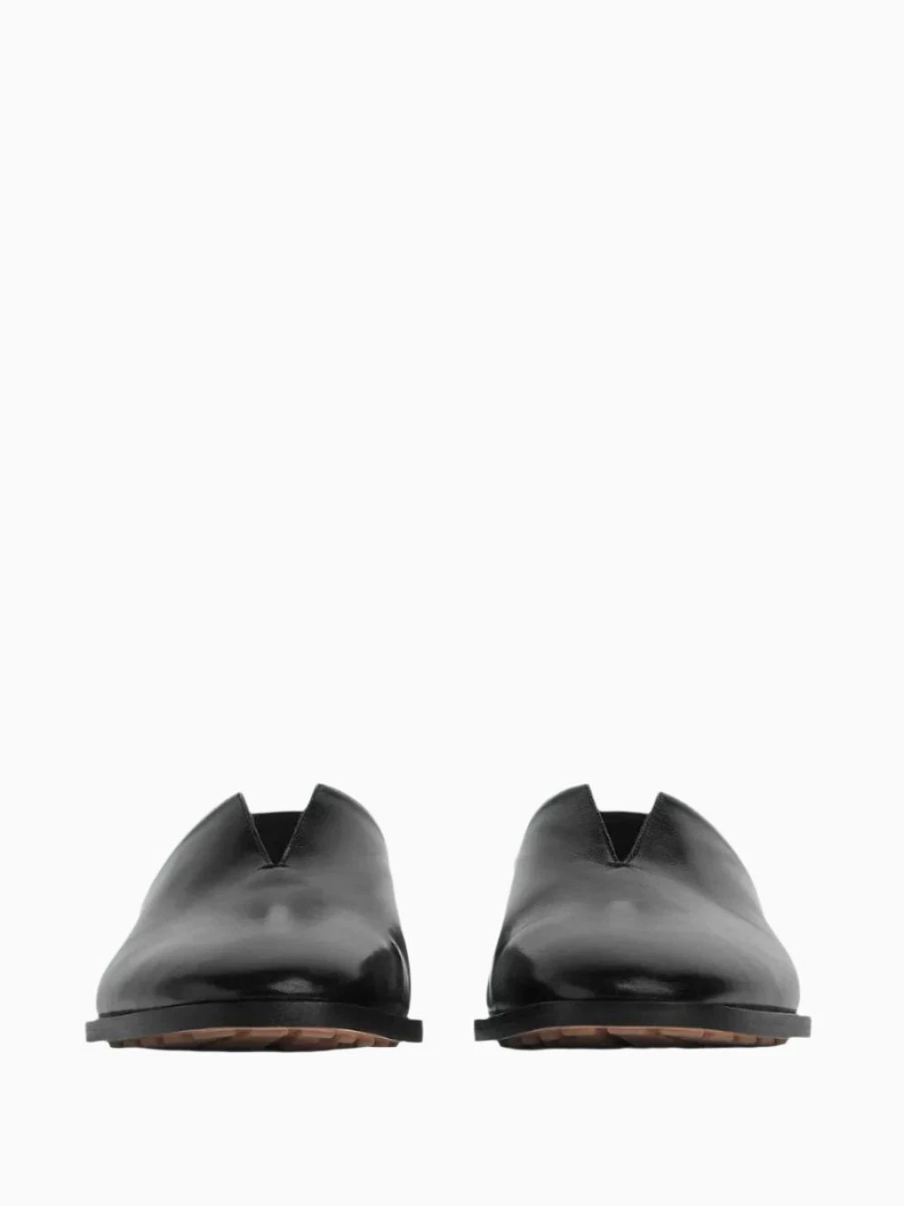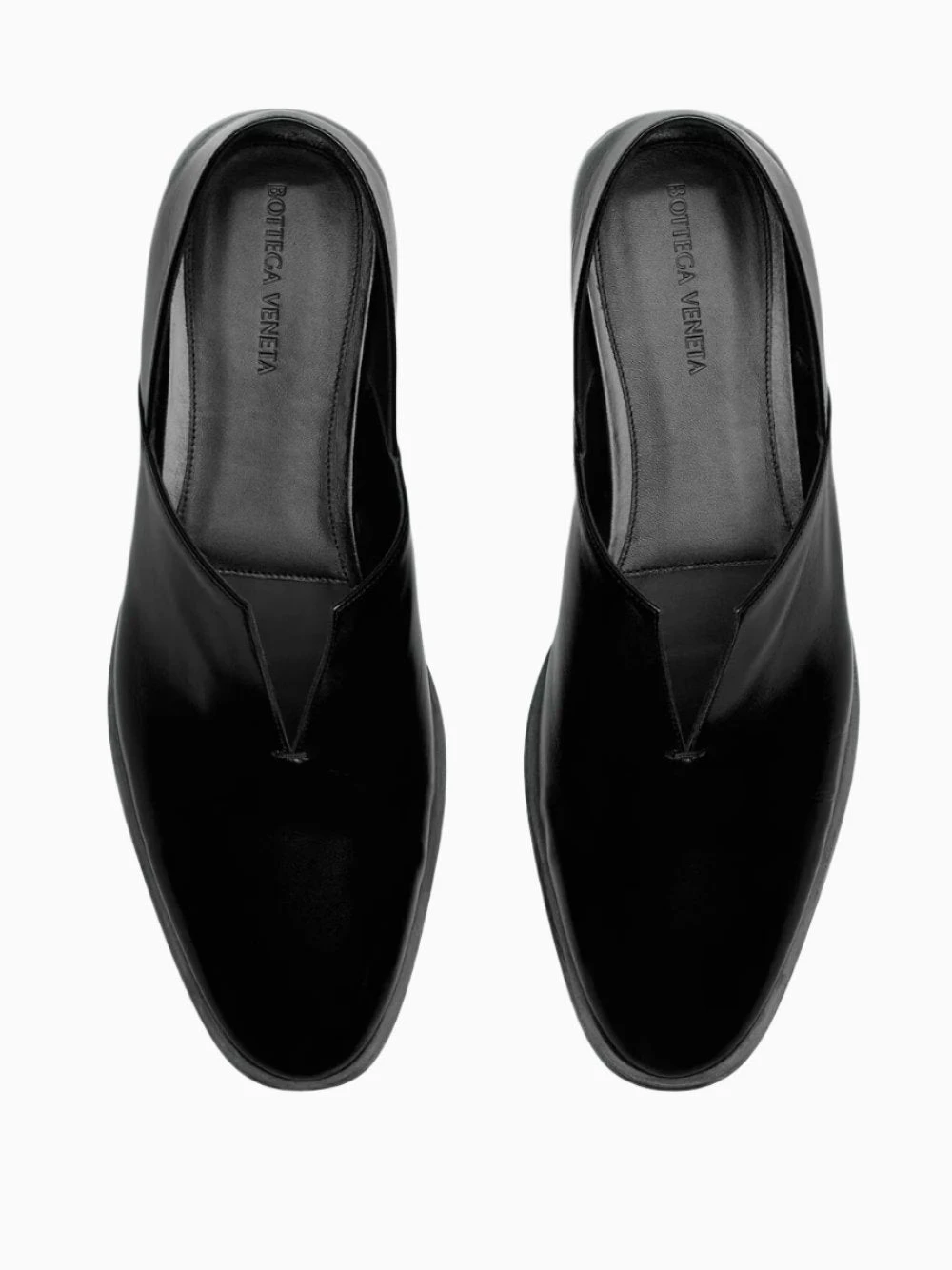 Bottega Veneta Cha-Cha slipper. Crafted in black leather with a closed back and rubber-injected leather outsole.