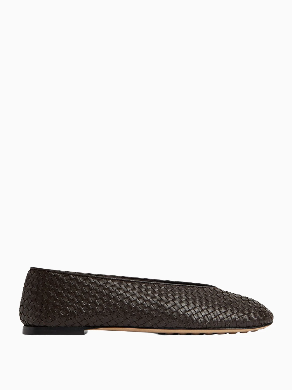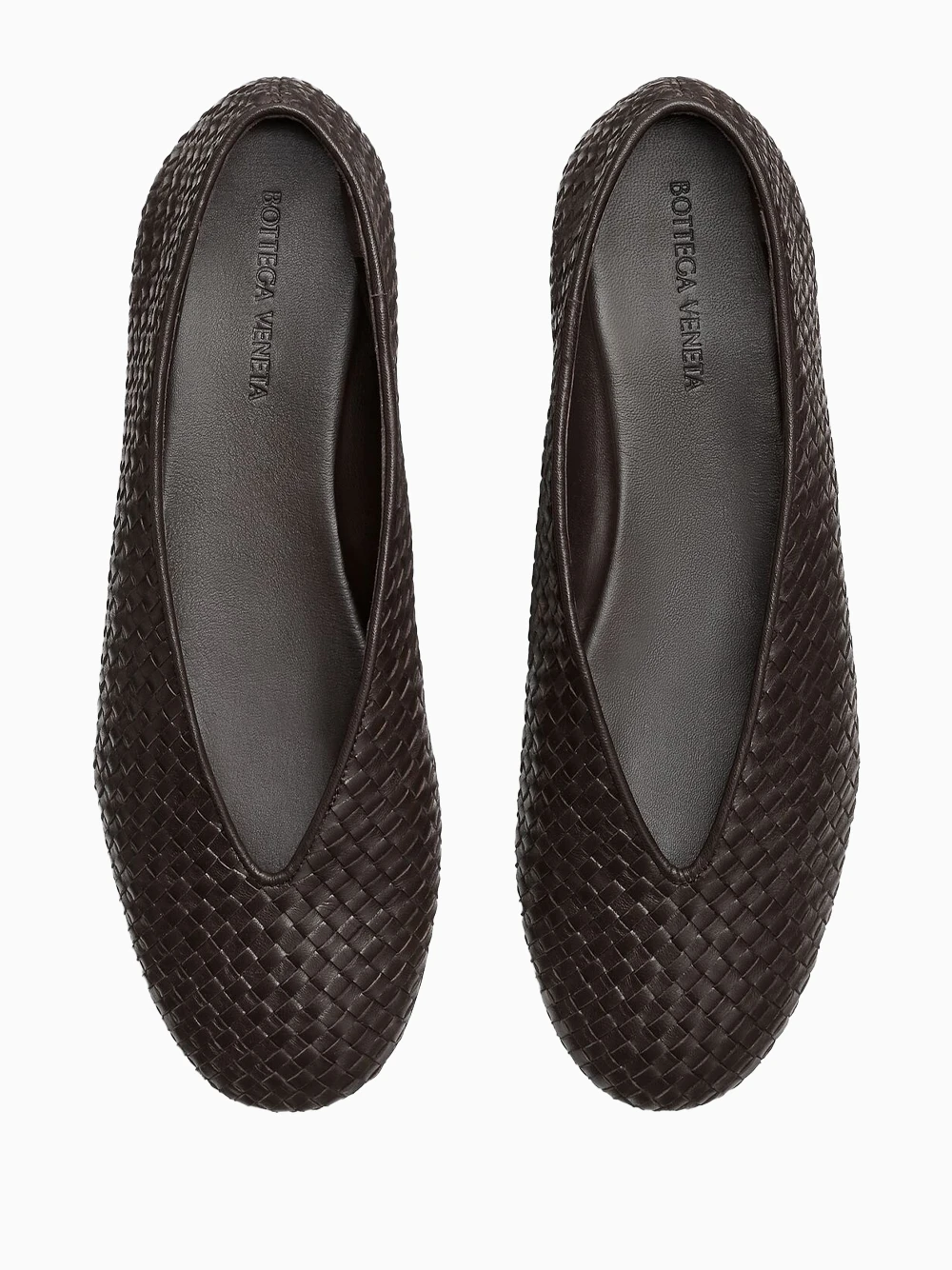 Bottega Veneta ballerinas in woven leather with supple structure and a smooth piping detail.
