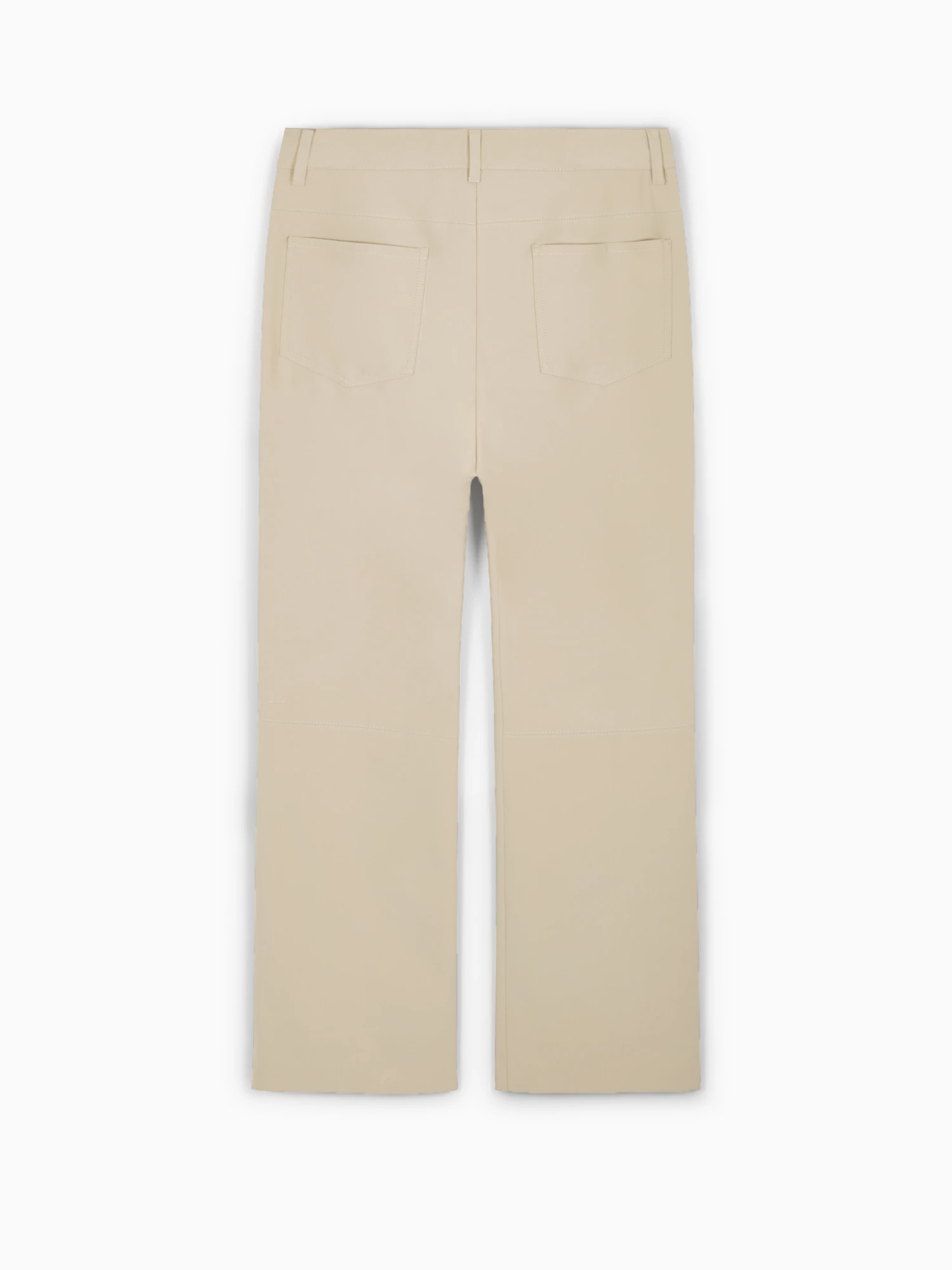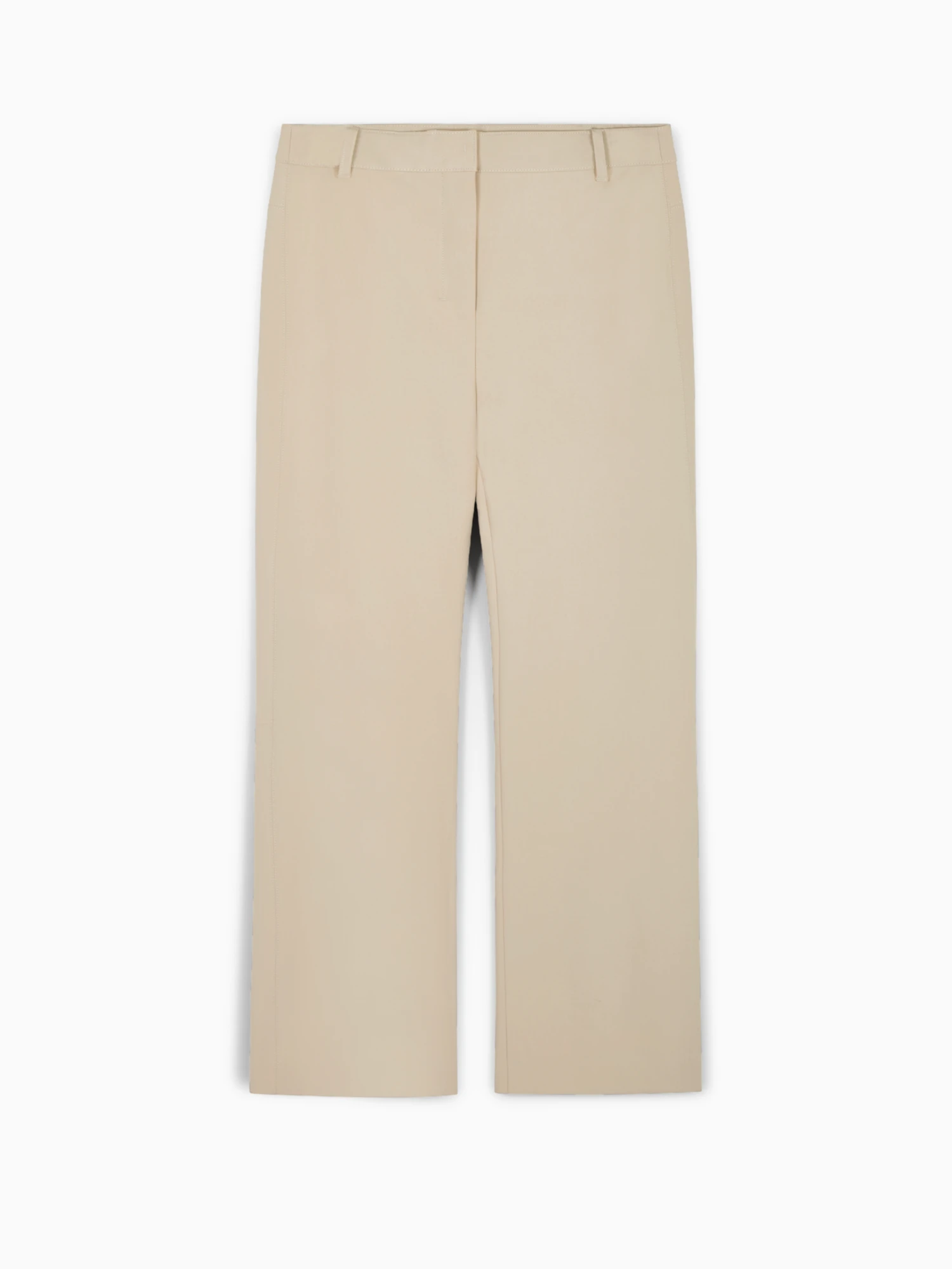 S Max Mara Chieti trousers. Crafted in beige double-faced stretch cotton and viscose with leather goods-style darts and seams. Featuring a slim fit that flares slightly at the hem, a cropped ankle cut and patch rear pockets. Belt loop details and a high-cut waistband with a fly-covered zip and hook-and-bar fastening.