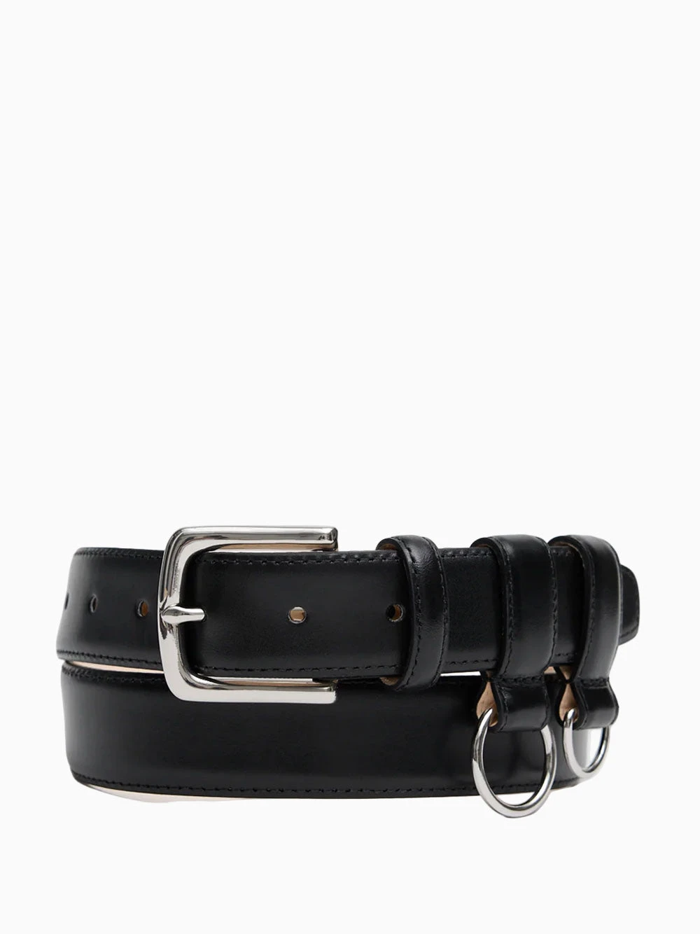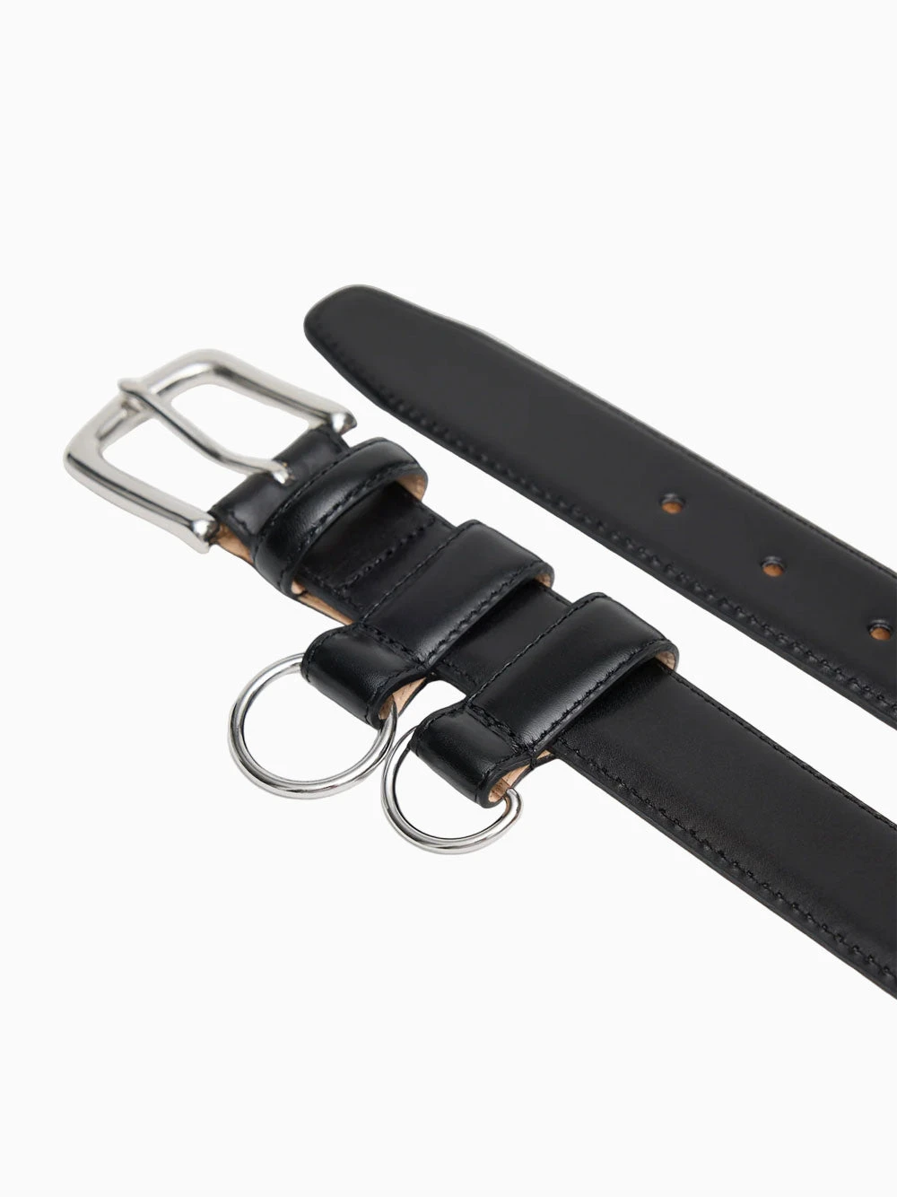 Tibi classic ring belt. Crafted in black leather with a minimal design and two removable D-ring loops to carry your needs.