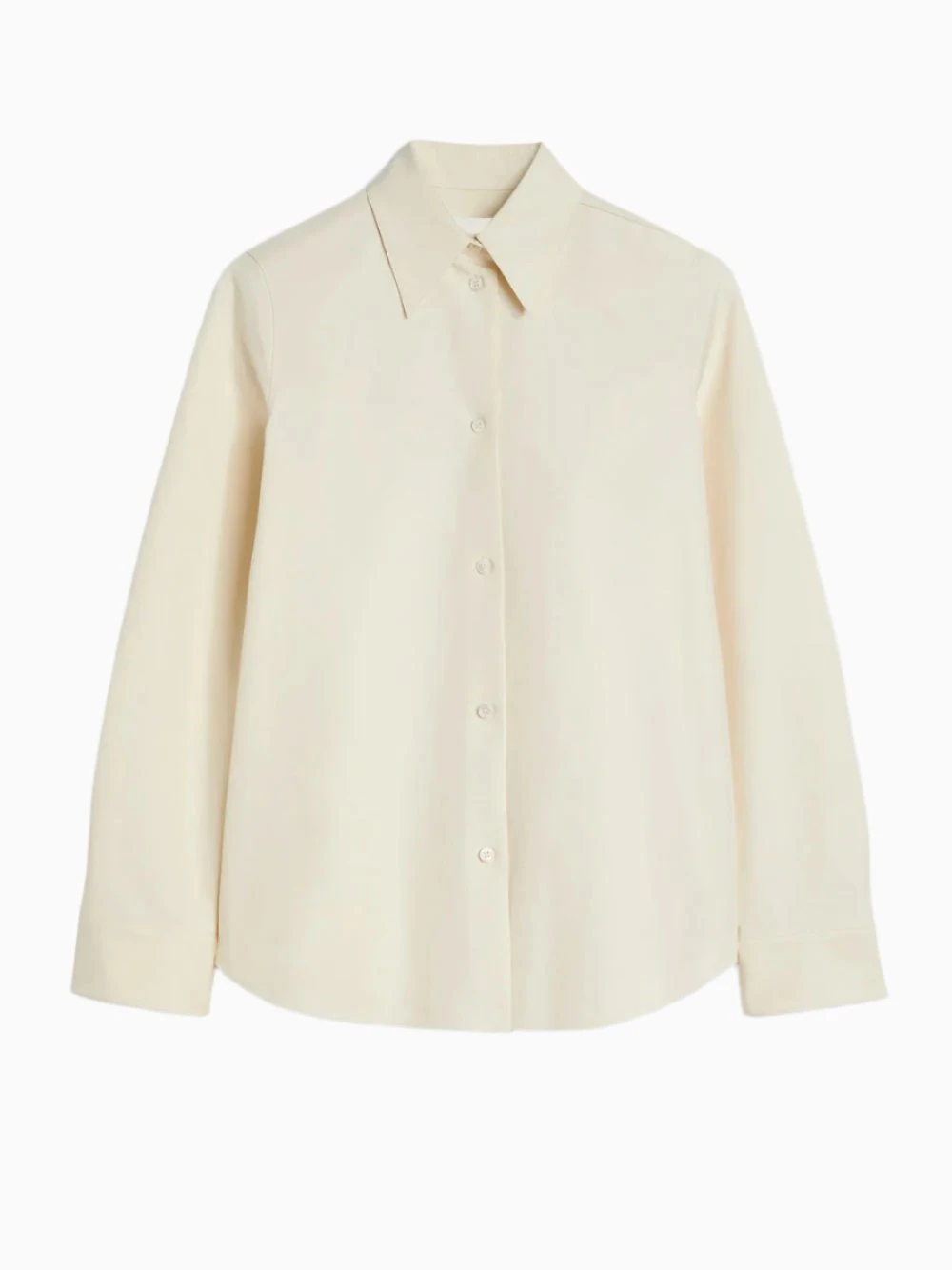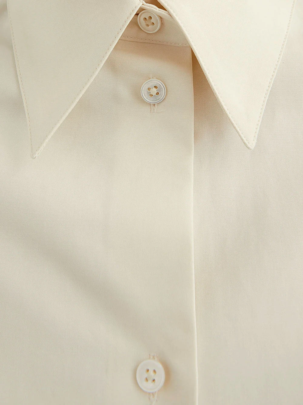 Jil Sander double cotton shirt in a butter tone. Slim-fitting and straight cut, with a pointed collar with one-button stand and front button closure.