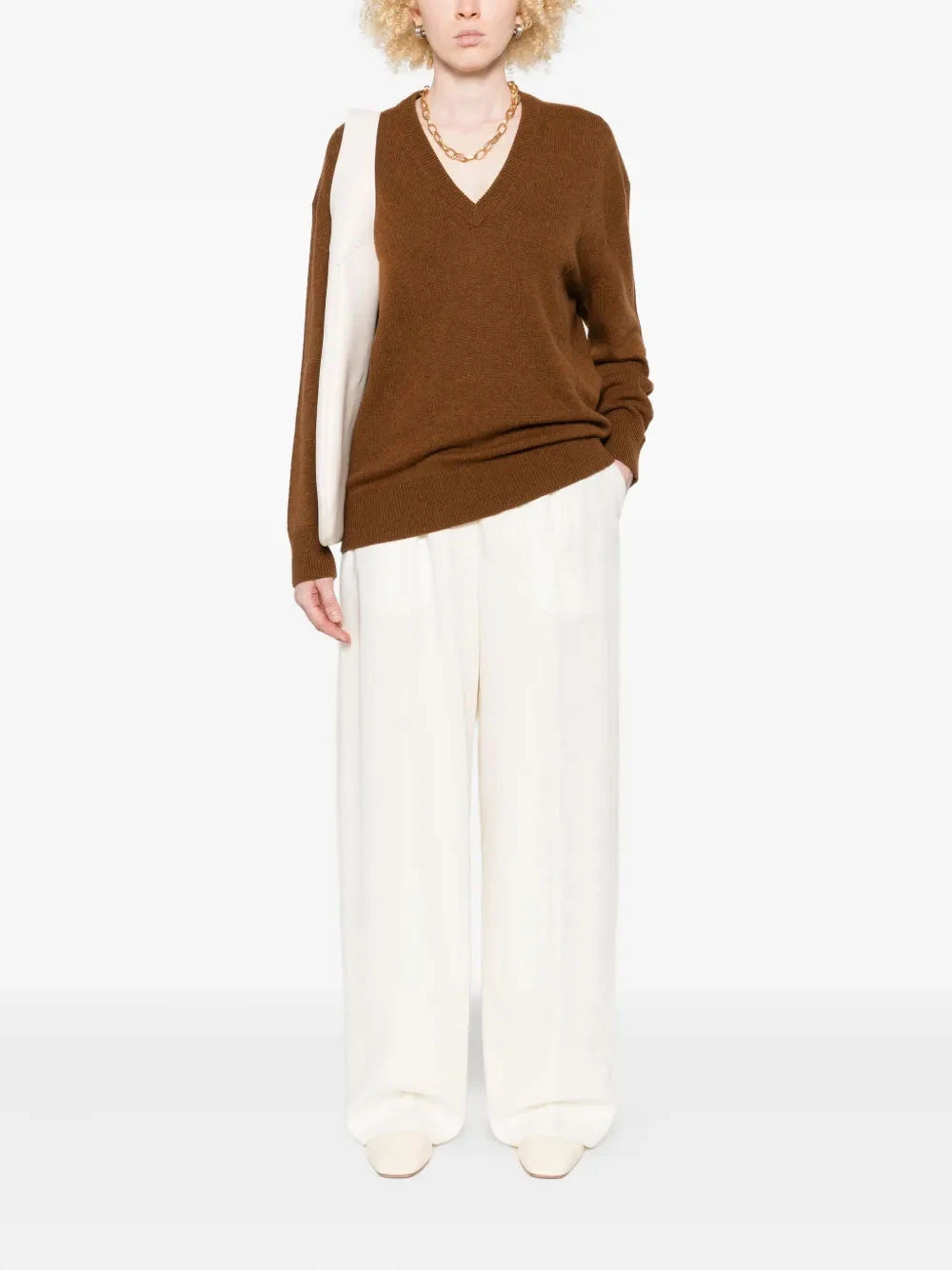 Jil Sander V-neck sweater. Crafted in brown wool and cashmere blend with a v-neck, long sleeves and ribbed cuffs and hem.