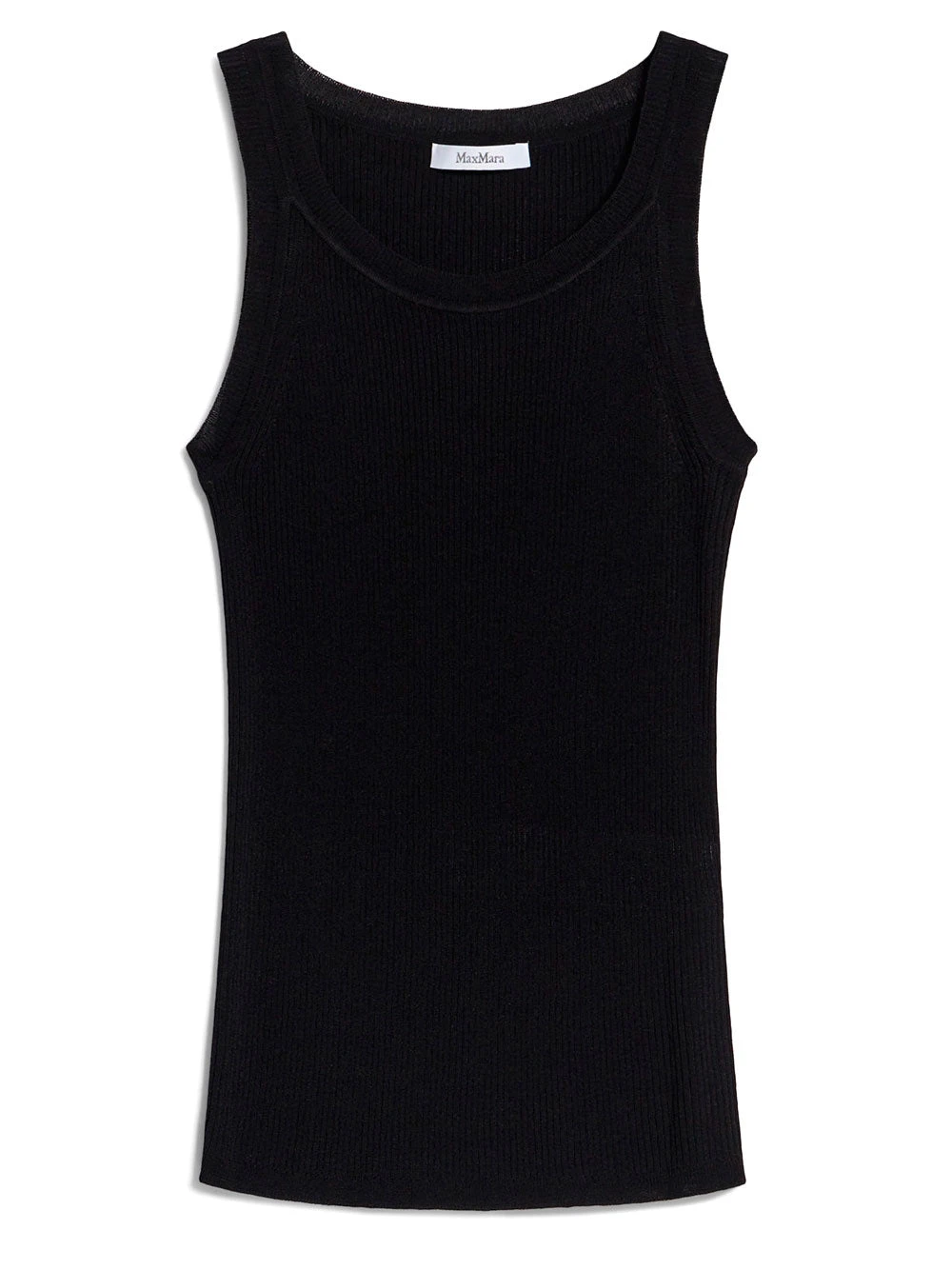 Max Mara black top. Crafted in 2×2 rib-knit viscose crepe yarn.