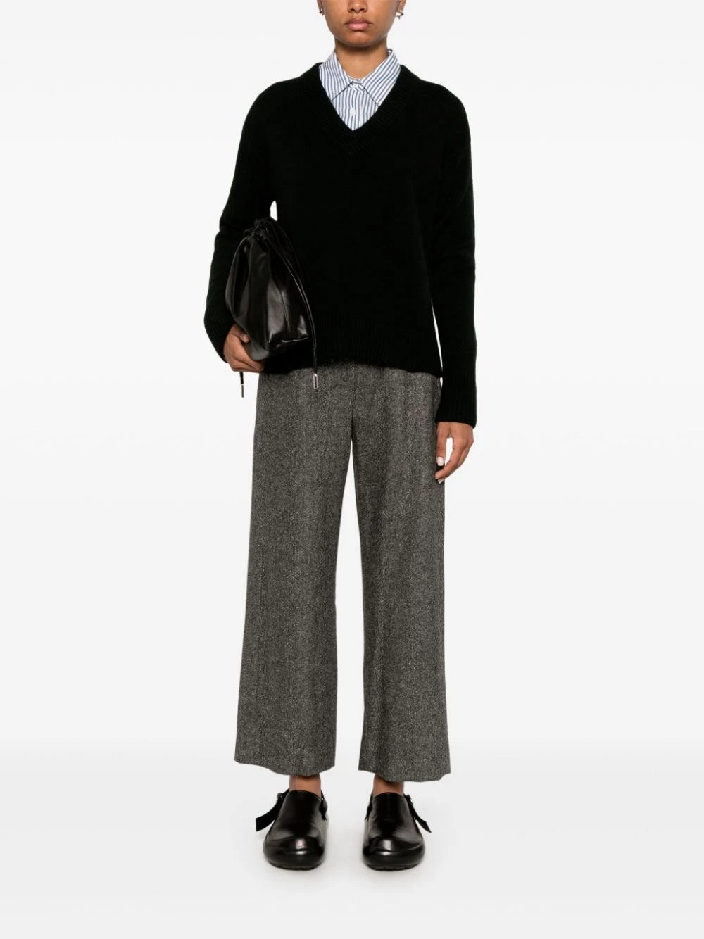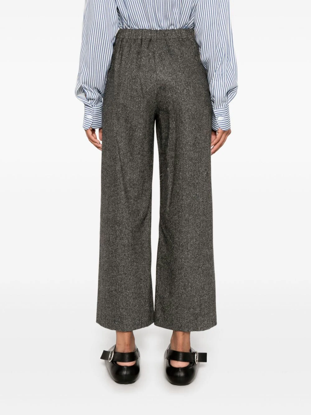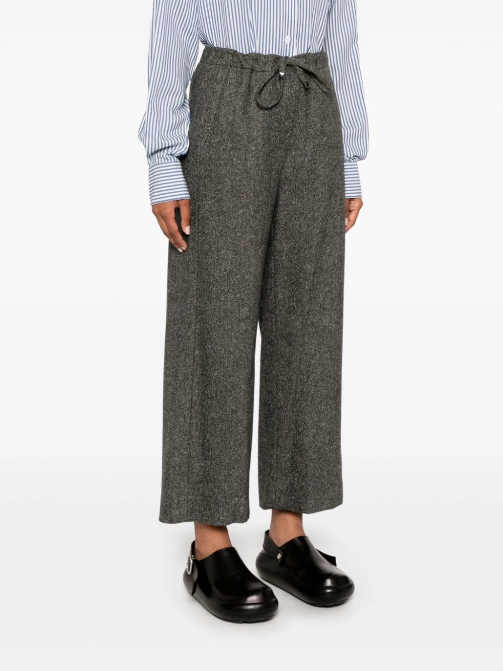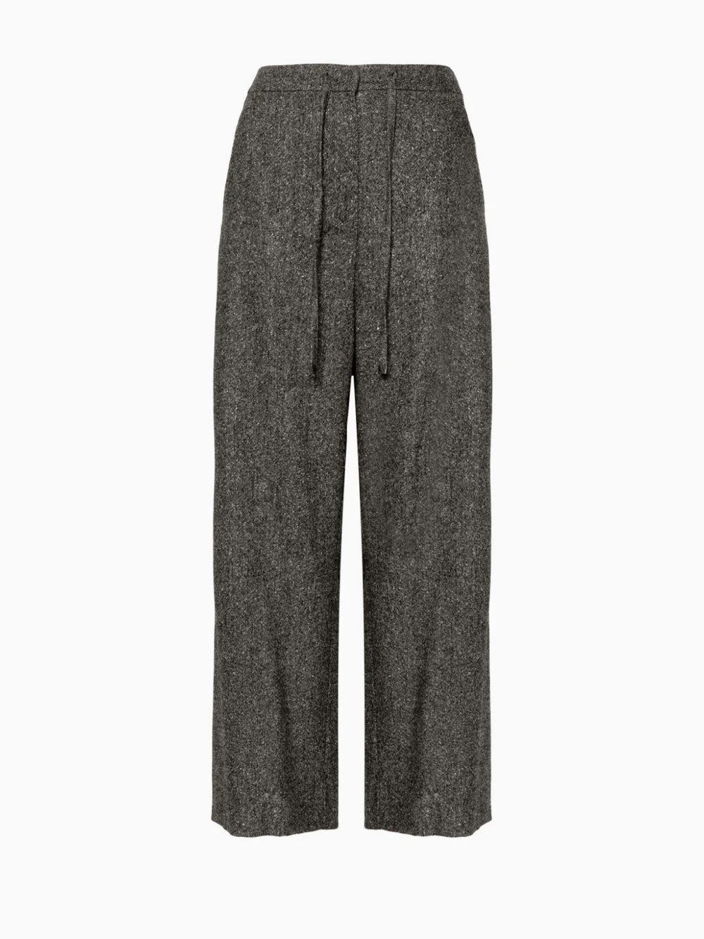 ‘S Max Mara Mina trousers featuring grey, virgin wool blend, marl knit, concealed front fastening, mid-rise, elasticated drawstring waistband, two side, slash pockets, straight leg, cropped leg.