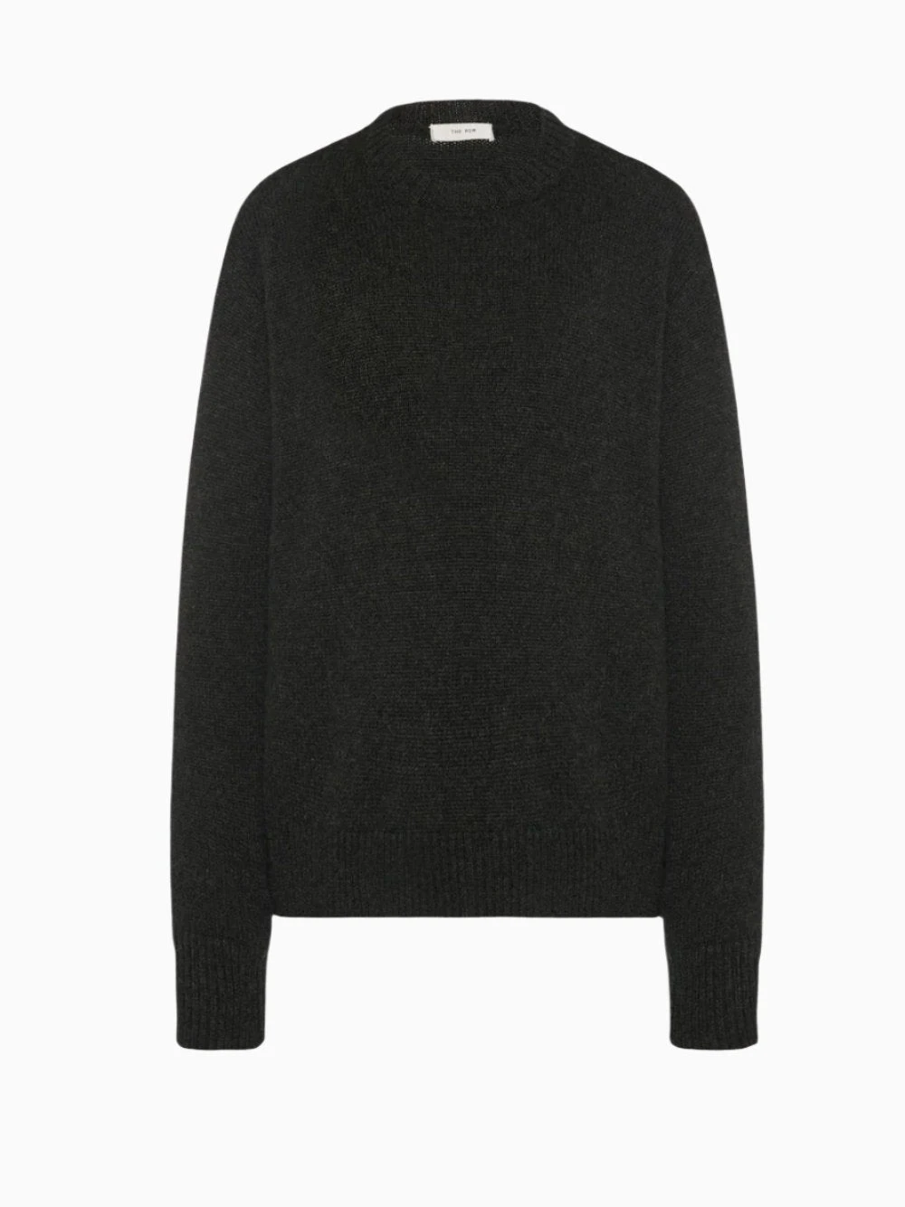 The Row Fiji top. Crafted in black mélange soft midweight cashmere with a classic boxy crewneck. Featuring a dip dyed finish and ribbed neckline, cuffs and hem.