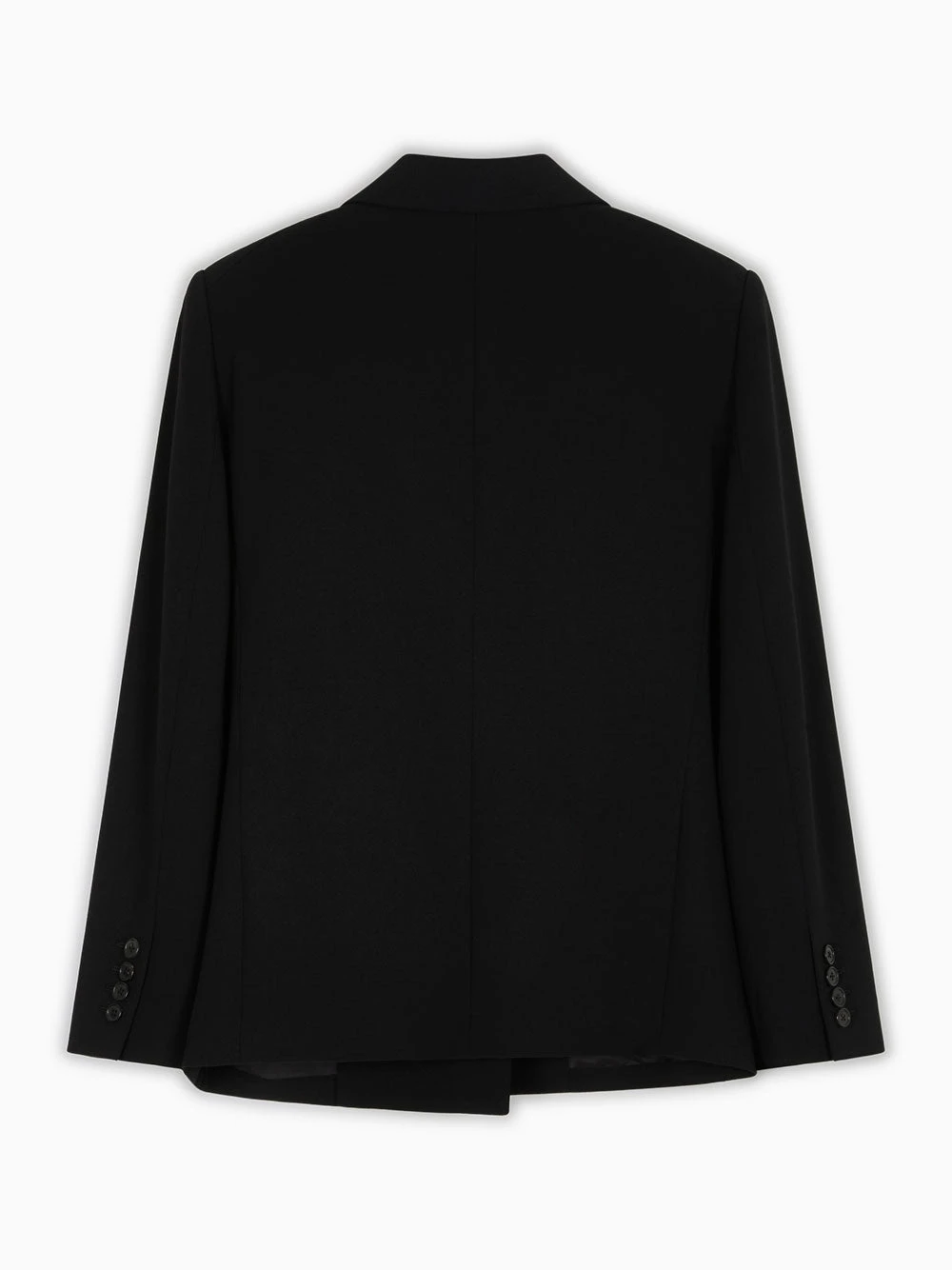 The Row Wallis jacket. Crafted in black stretch wool featuring button front closure, a peak lapel, cropped sleeves, straight hem and a regular fit.