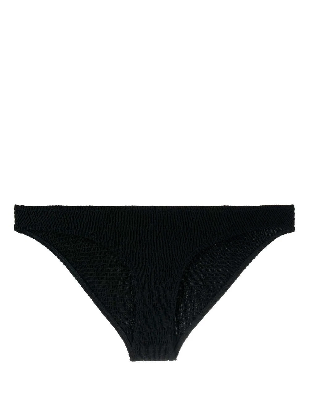 Toteme black bikini bottoms. Crafted in recycled polyamide with smocking details and an elasticated trim. Featuring partial lining and a stretch-design.