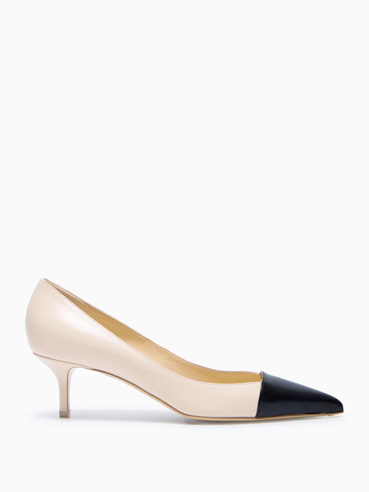 Francesco Russo two-tone pumps. Crafted in nude leather with a contrasting black tip.