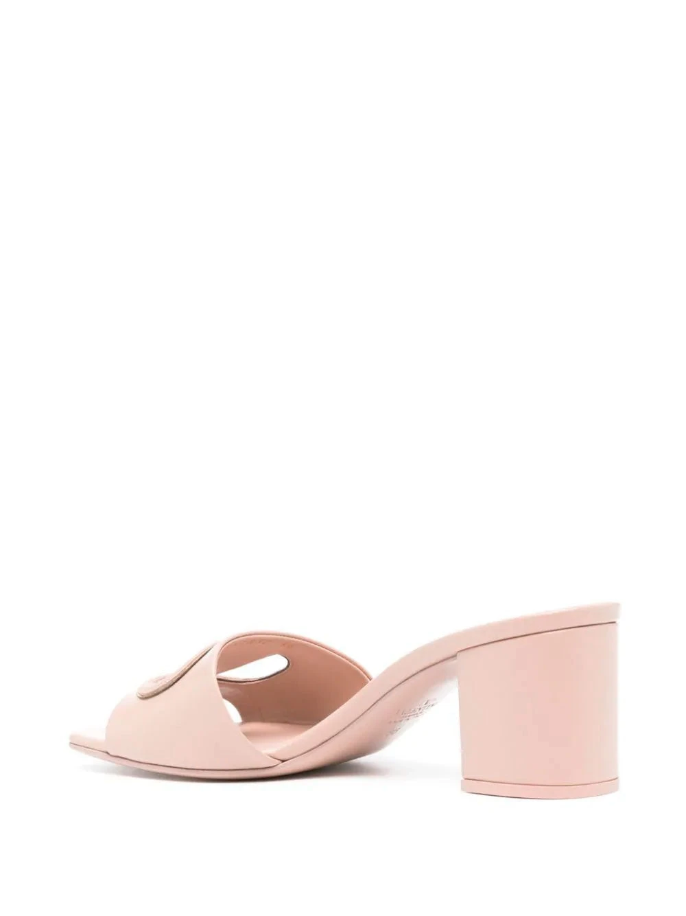 Valentino Garavani´s VLogo mules, crafted in blush beige smooth grain leather. Featuring mid block heel, single toe strap, cut-out VLogo Signature insert and square open toe. Branded leather insole, leather outsole and slip-on style.